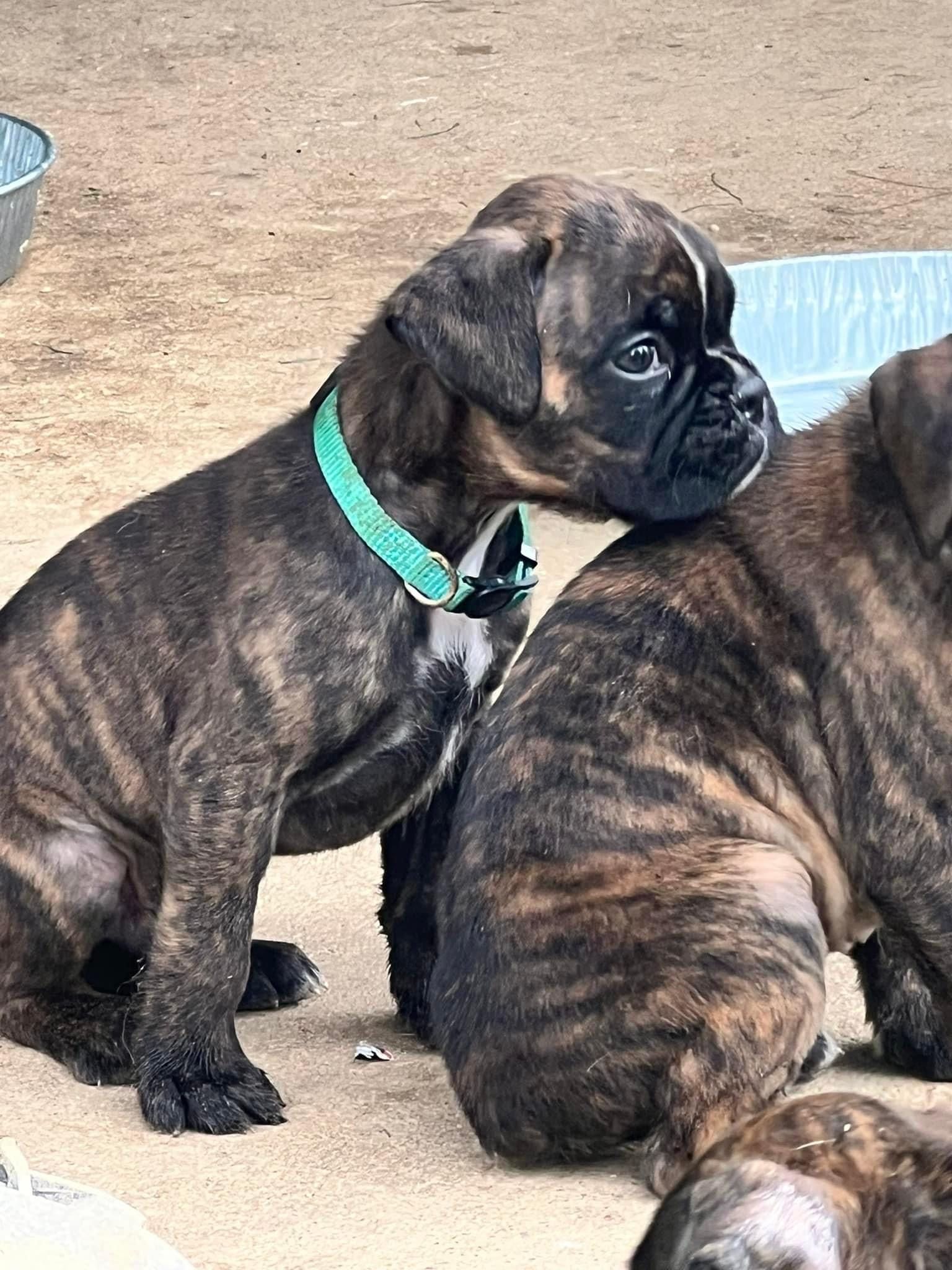 Our puppies include fawn and brindle. Colors will vary depending on the parent dogs.