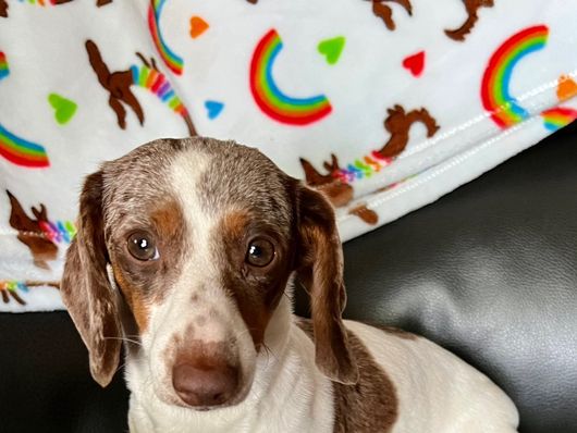 Trigger is a male Dachshund. Carefully selected as a great representative of his breed, Michaela decided to make him part of their program. Michaela has passed Good Dog’s screening process, which involved a review of their breeding practices, environment, and the mental and physical health of their dogs.