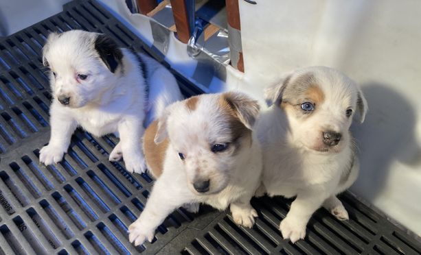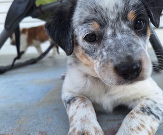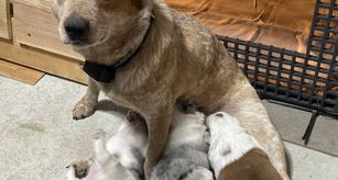 Our Australian Cattle Dog puppies are red mottled. Companion Cross puppies are blue. Colors will vary depending on the parent dogs.