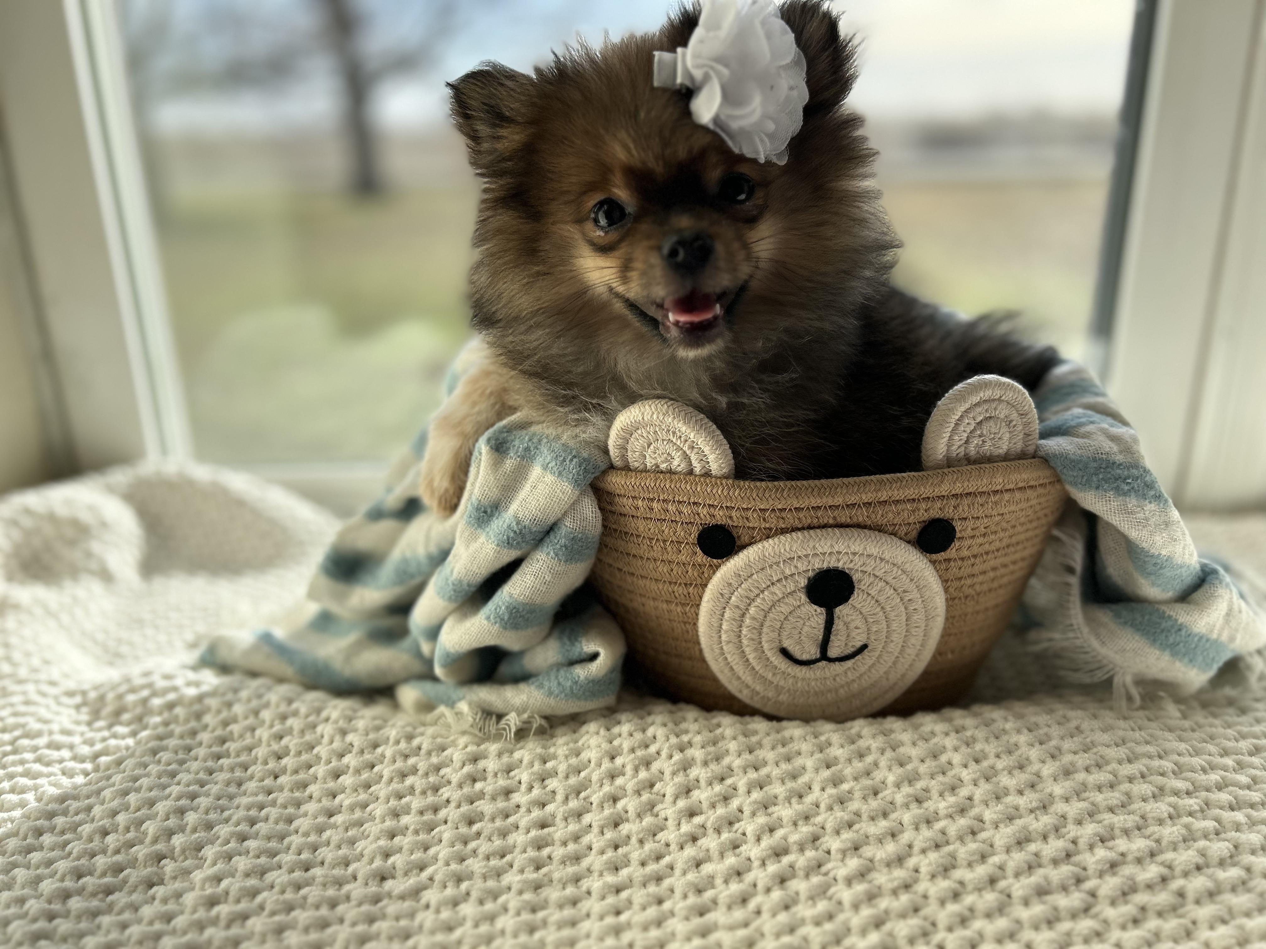 I'm Melissa P., the breeder behind My Bella’s Pomeranians located in Inola, OK. We are a small family breeder located in the Tulsa area, of Oklahoma. We pride ourselves in raising quality, healthy, and well-socialized puppies for families. Our dogs are raised inside our homes and handled by us from the day they are born. We do not sell to kennels or rehome our retired moms. We have recently added Pomeranians to our list of breeds and have 3 breeding females named Honey, Nutmeg, & Bluebell. Honey had our first first litter of Poms on 6/19/2022.