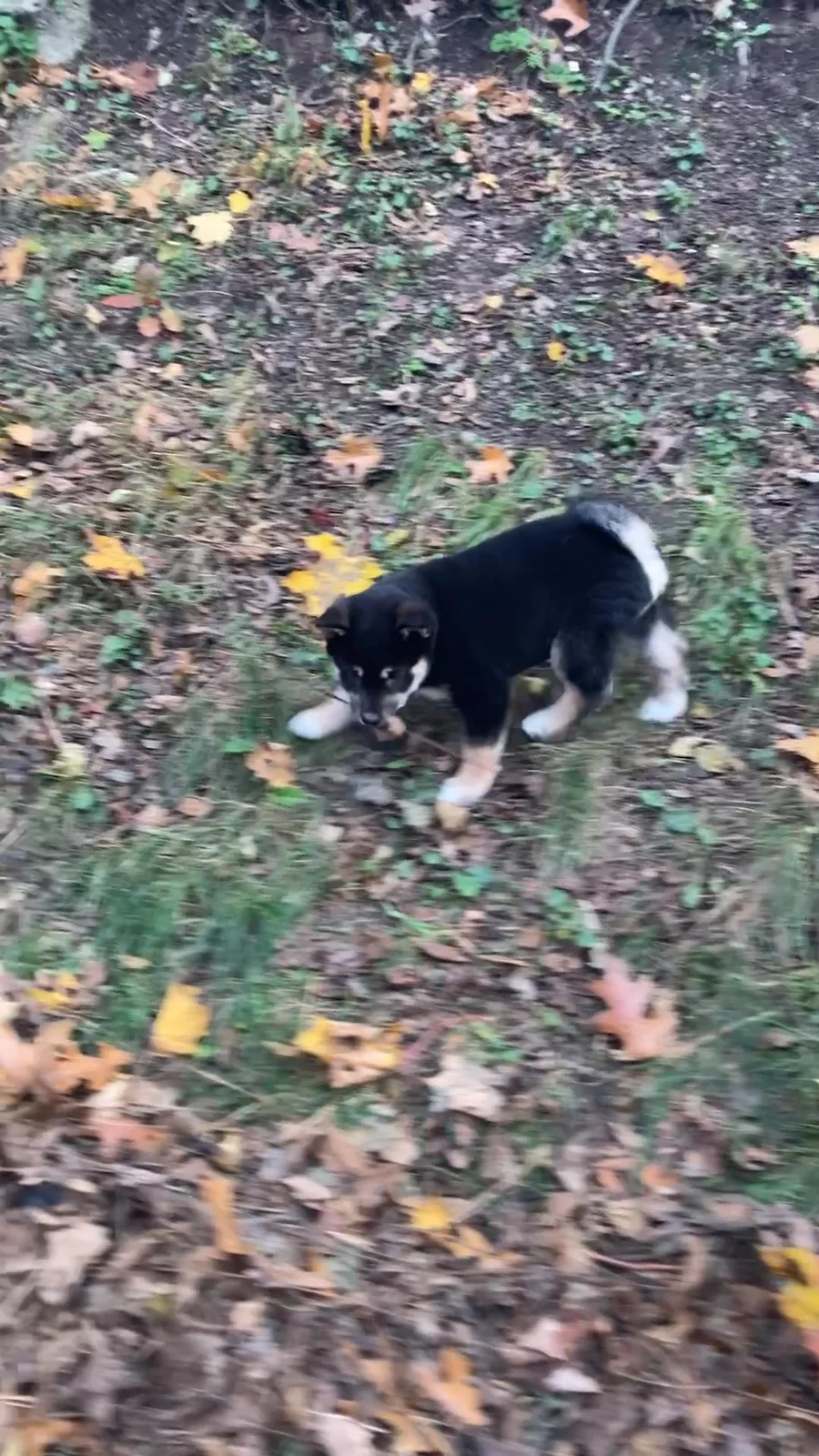 The boys enjoy the fall air play with the leafs and take potty breaks outside starting at 5wks old.