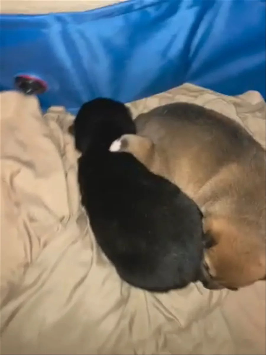 Nutmeg (sable) Milano (black n tan) are getting bigger now eating and snuggling with Suki