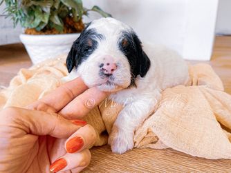 I was raised on a horse and cattle farm and have always been a dog lover. Growing up on a farm it taught me work ethic, and how to care for animals. Bernese Mountain Dogs have always been my favorite breed- I wanted to give people the opportunity to experience their personality while being able to have a non shedding- allergy friendly dog which is why I decided to start breeding Bernedoodles.
