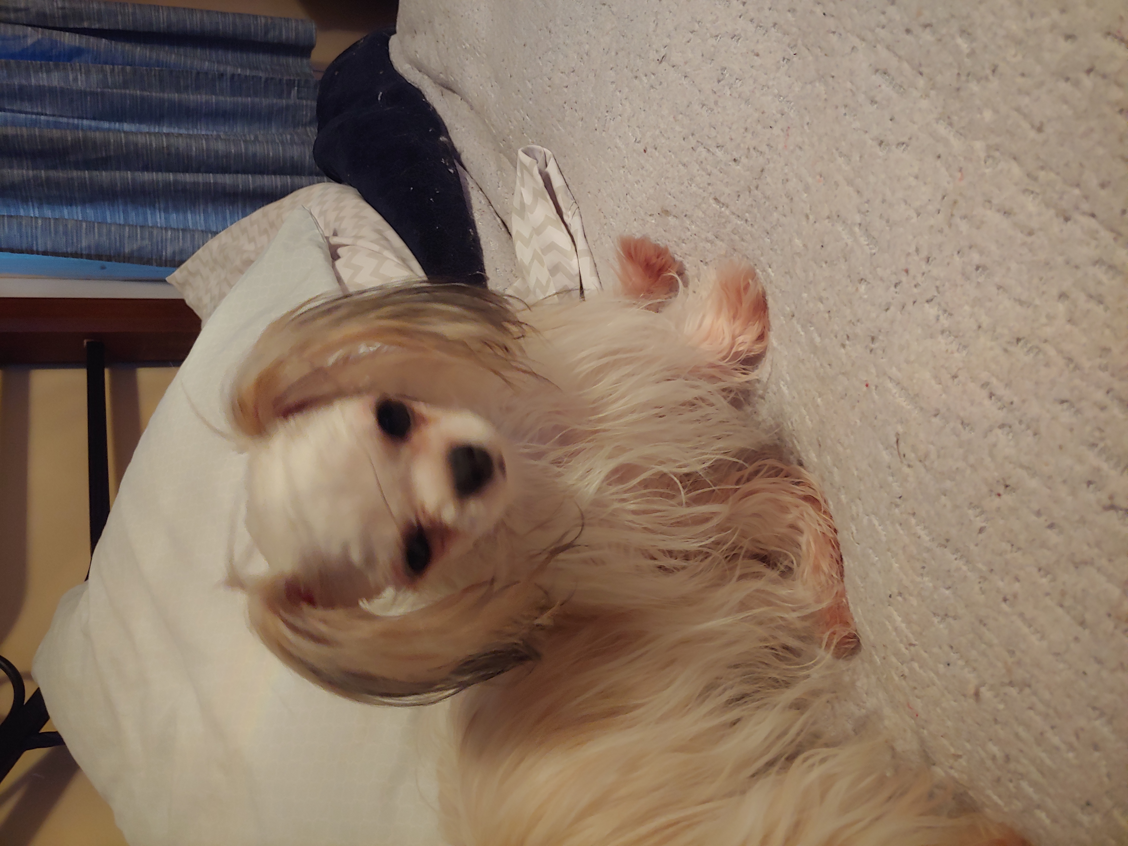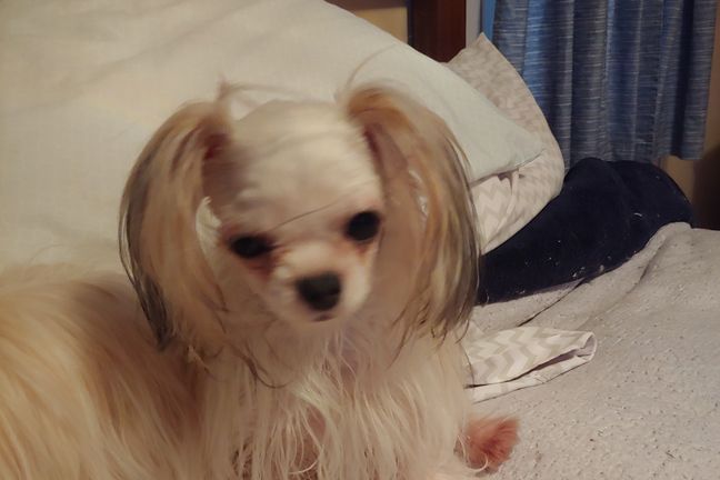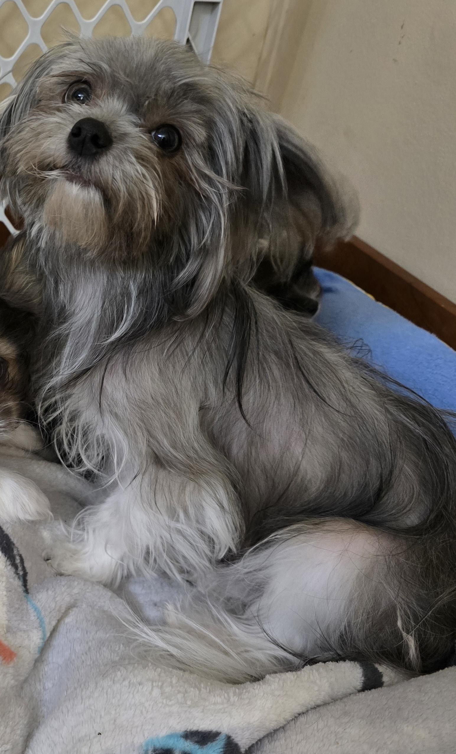 Bam bam is a low key male he loves to be a lap dog to be patted all day he loves everyone that comes to our home he gets along great with my other dogs