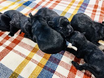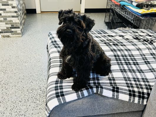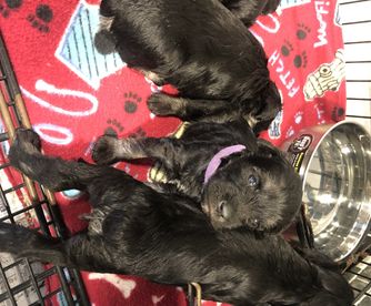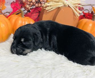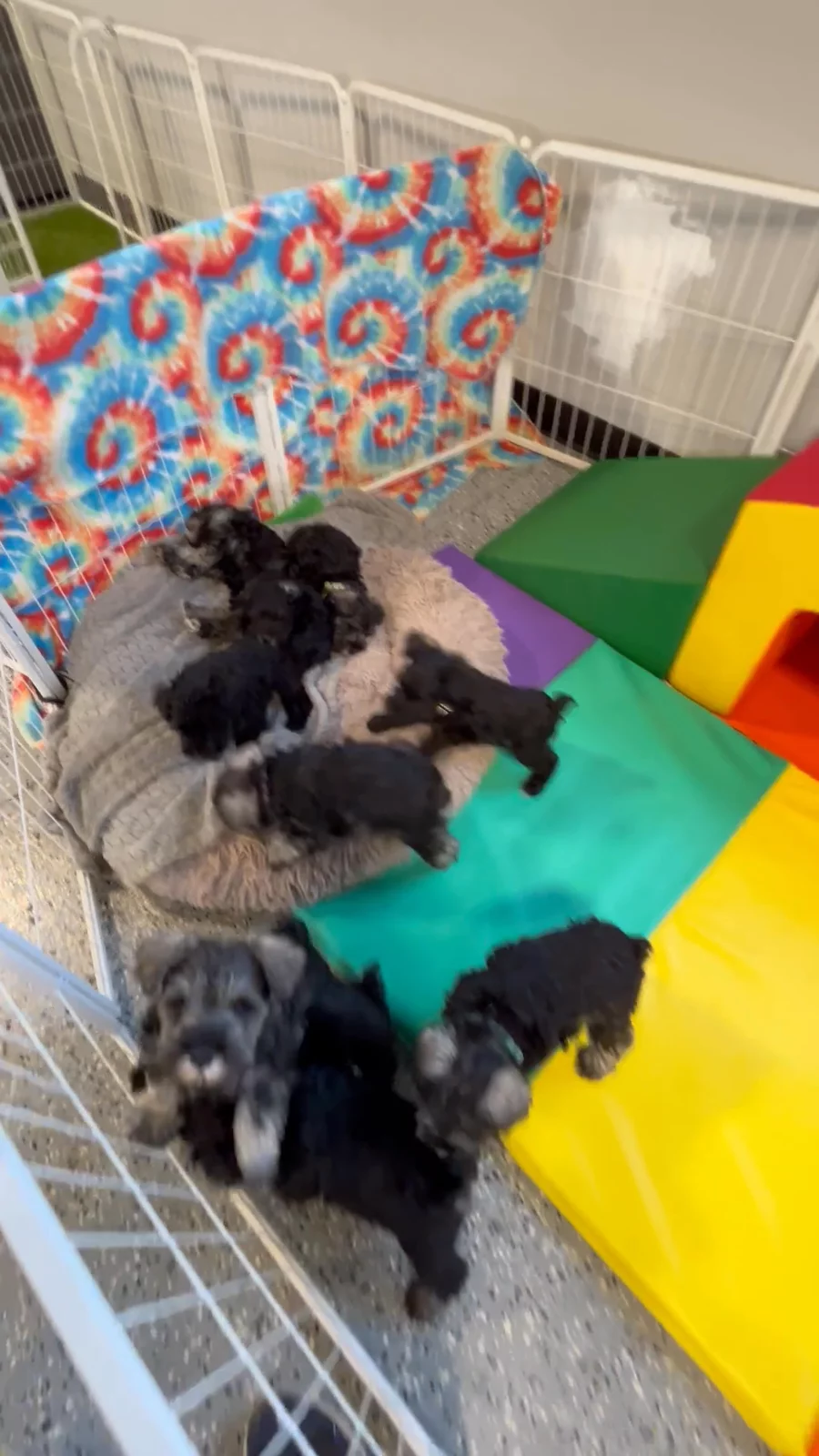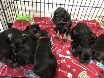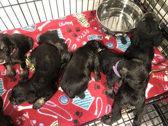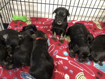 Our puppies include salt and pepper, black and silver, and black. Colors will vary depending on the parent dogs.