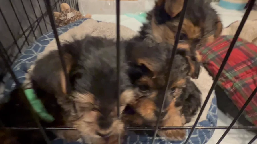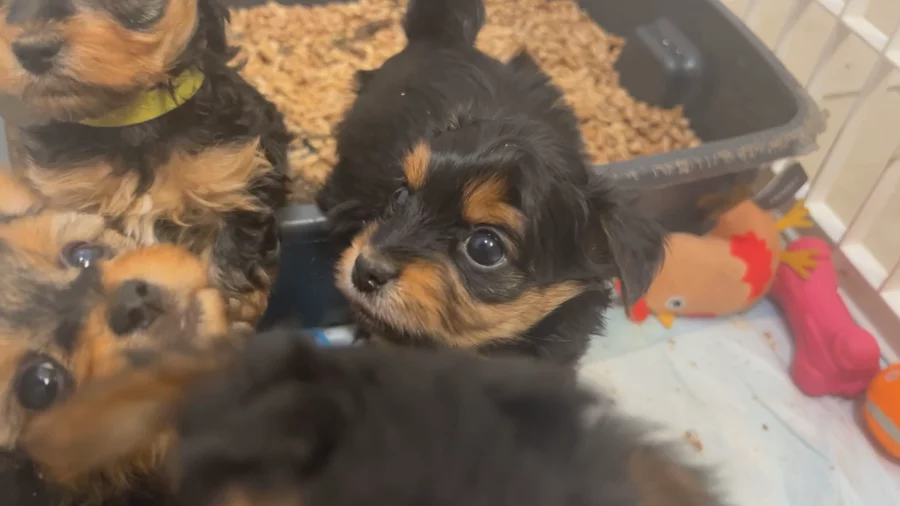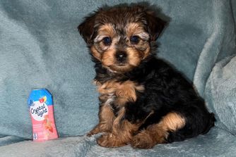 Our Yorkshire Terrier puppies include chocolate and tan, chocolate, tan and white, and black and tan. Morkie puppies include black & tan tri-color and white and tan. Colors will vary depending on the parent dogs.
