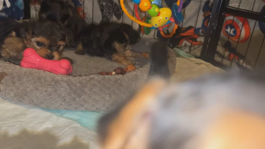 These 3 tiny fur babies are so playful & they love chasing my hands when I move anything in their play area. Kaycee, Kinsey & Kody got their first set of shots & were vet checked on Friday, so they’ll be ready to go to their new homes in no time!! Check us out Facebook as well at M.Y. Morkies & Yorkies!