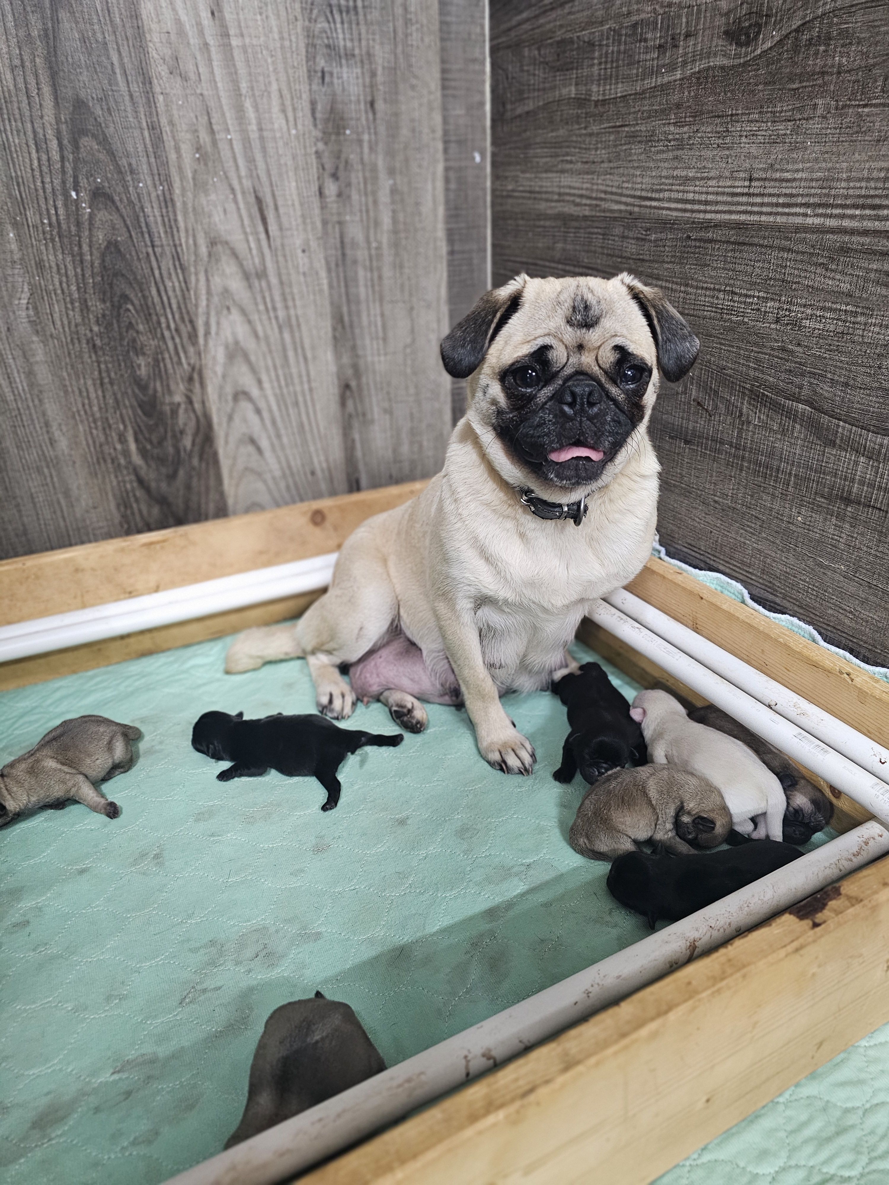 I am so grateful for finding Annie and her pugs! With her detailed profile and long line of breeding I felt comfortable reaching out to Annie. She answered all of my (many) questions and replied quickly. Annie made the whole process easy and quick which led me to getting my sweet little boy from her. If and when I decide to adopt another pup, Annie’s pugs will be my first pick!