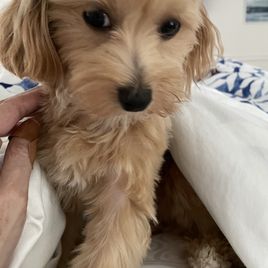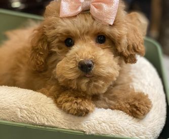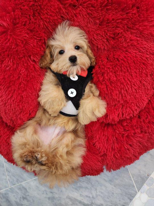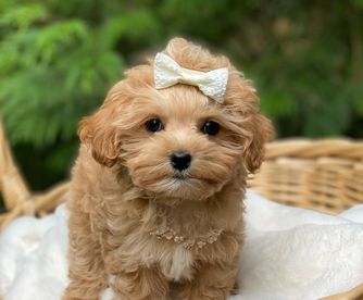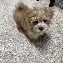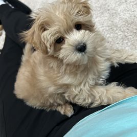 We are beyond happy adopting our maltipoo SweetHeart from Nina! Nina is an excellent breeder, knowledgeable, compassionate and caring. The pictures were great but her daughter also made some short videos so we could see more of her personality, was great. Then we met her, love at first sight. Nina included fantastic new puppy bag and we have used everything! Blanket ❤️, harness & leash, food, chews & treats, bowls, chew toys and large stuffed lamb, incredibly thoughtful of her and all used! She came crate trained and loving children, she is happily petted by new kids daily. Onto potty training out every 2 hours no water after 6pm, holds bladder 9 hours during night now, going well! We are so happy, great choice adopting from Nina and will recommend to anyone who is looking for a great new family member!