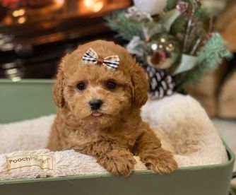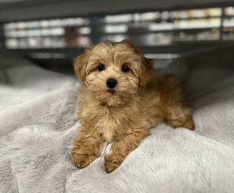 Our Cavapoo puppies include cream, red, blenheim, and black. Maltipoo puppies include apricot, cream, and white. Poodle puppies include apricot, black, and red. Colors will vary depending on the parent dogs.