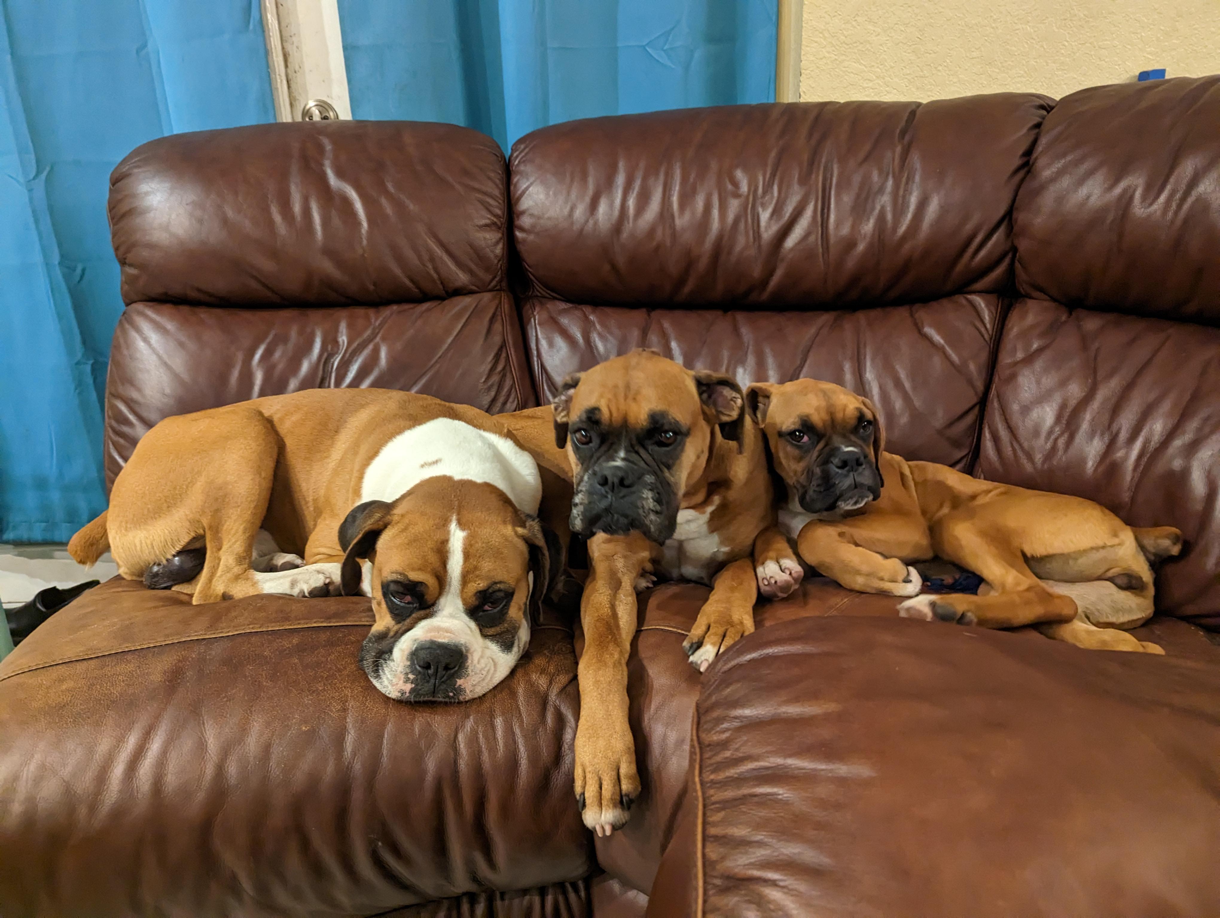 D.O.G is a male Boxer. Carefully selected as a great representative of his breed, Tristina decided to make him part of their program. Tristina has passed Good Dog’s screening process, which involved a review of their breeding practices, environment, and the mental and physical health of their dogs.