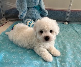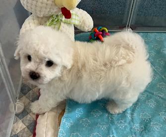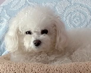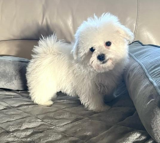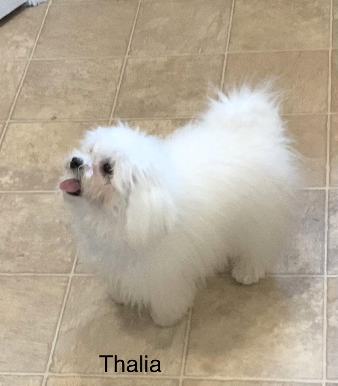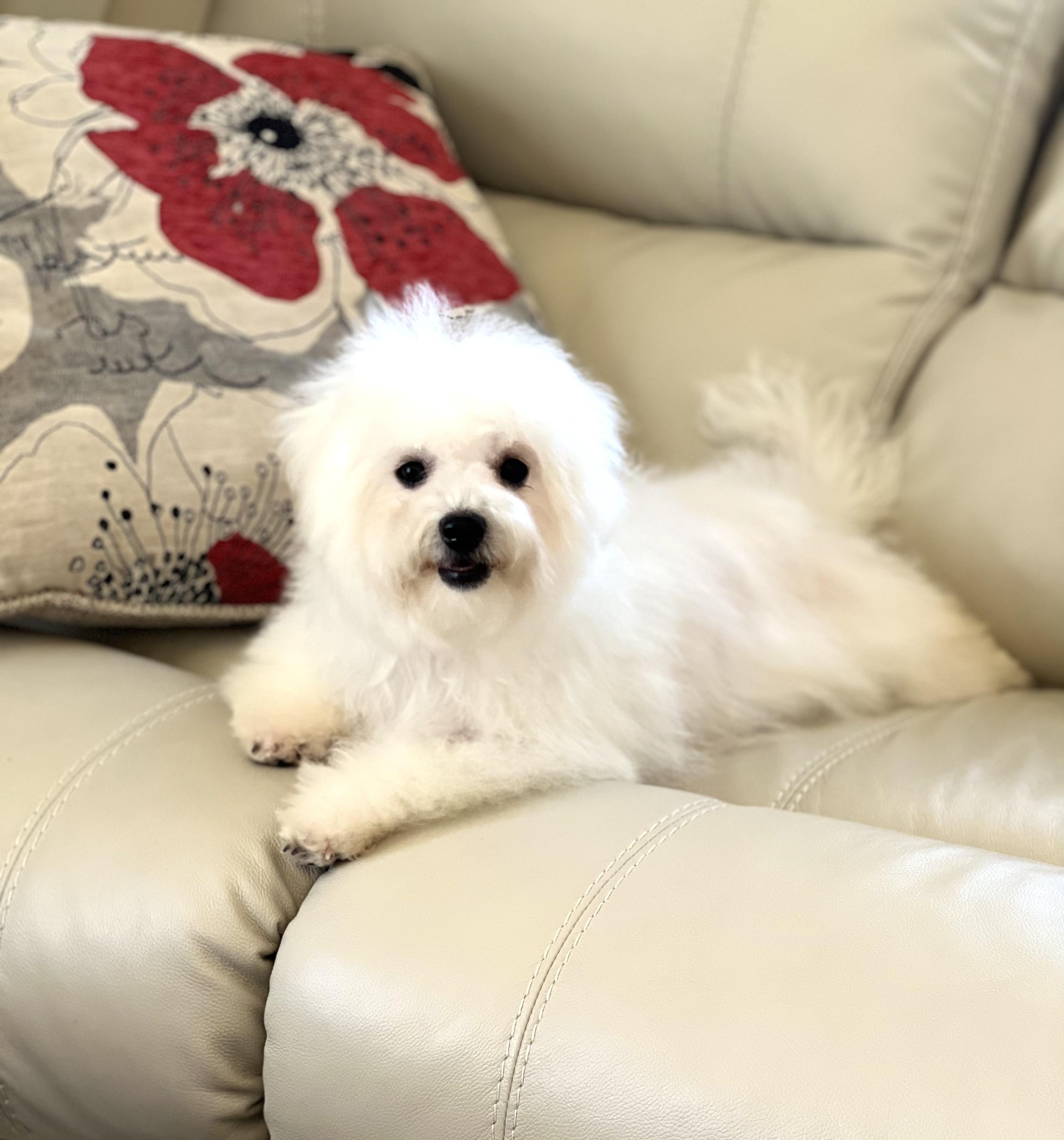 Ginny is a female Bolognese. Carefully selected as a great representative of her breed, Rowena decided to make her part of their program. Rowena has passed Good Dog’s screening process, which involved a review of their breeding practices, environment, and the mental and physical health of their dogs.
