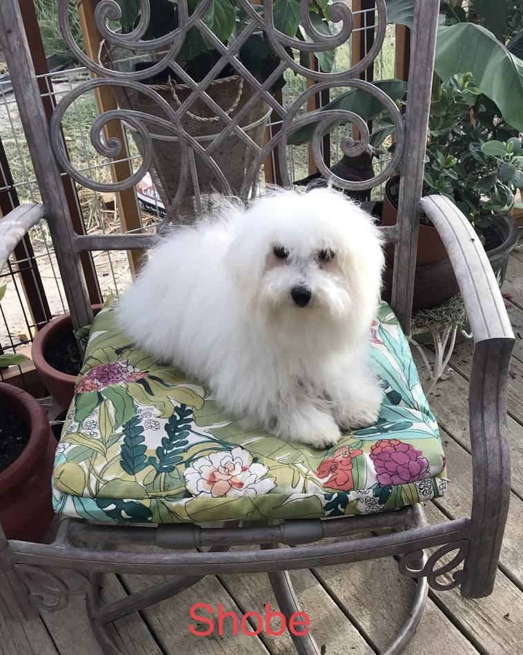 Shobe is a female Bolognese. Carefully selected as a great representative of her breed, Rowena decided to make her part of their program. Rowena has passed Good Dog’s screening process, which involved a review of their breeding practices, environment, and the mental and physical health of their dogs.