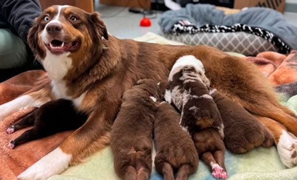 Our puppies include red merle and red tri-color. Colors will vary depending on the parent dogs.