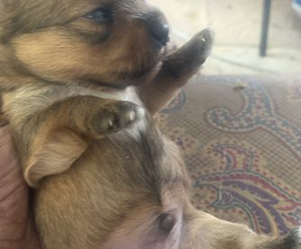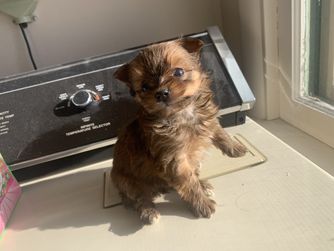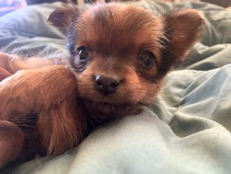 I'm Mystery H., the breeder behind Mystery‘s Barefoot Acres located in Montana. The dam is a red 1/2 Pom and 1/2 yorkie mixed.