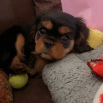 Our puppies include blenheim, ruby, tri-color, and black and tan. Colors will vary depending on the parent dogs.