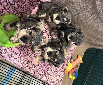 Our puppies are salt and pepper. Colors will vary depending on the parent dogs.