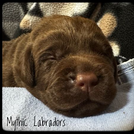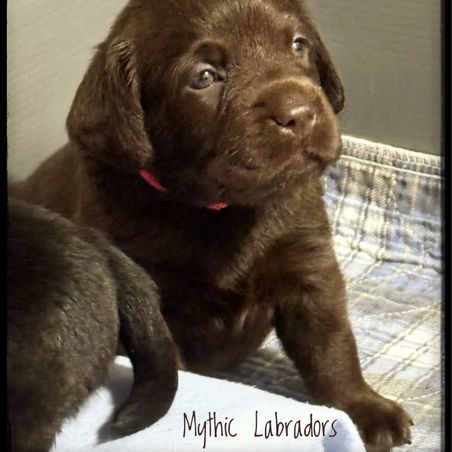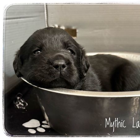 I cannot believe it is FOUR weeks tomorrow since we met and picked up our puppy from Laura and Gary Altizer at Mythic Labradors! I am extremely grateful for my experience with Good Dog and with Laura Altizer. I wouldn't have found Mythic Labs if it hadn't been for Good Dog! I was super pleased with my experience with Mythic Labs and Laura especially for many reasons. You can tell that they really care about their dogs and puppies in many ways: 1. They have very high testing standards for their sires and dams. 2. They have been doing this for 24 years and yet they continue to want to improve their efforts. 3. the majority of their customers are previous patrons. 4. The pups and mom are under their watchful eye almost 24/7 as they start off in their bedroom. 5. They are particular about the food the pups and mom get which includes organic berries, carrots and other wholesome nutritional support. 6. The Altizers have personal integrity with the way they handle their business; they are trustworthy with their word! 7. They are committed to the purity of the English Lab breed, emphasizing no dilutions. 8. Laura was quick to respond to my questions and offered some very helpful resources. 9. Laura frequently posted photos and progress of the pups on FB I feel blessed that I found Mythic Labs through Good Dog and that I had the privilege of working with Laura. We are extremely blessed to have Theodore now as a part of our family! And I HIGHLY RECOMMEND MYTHIC LABRADORS TO ANYONE!