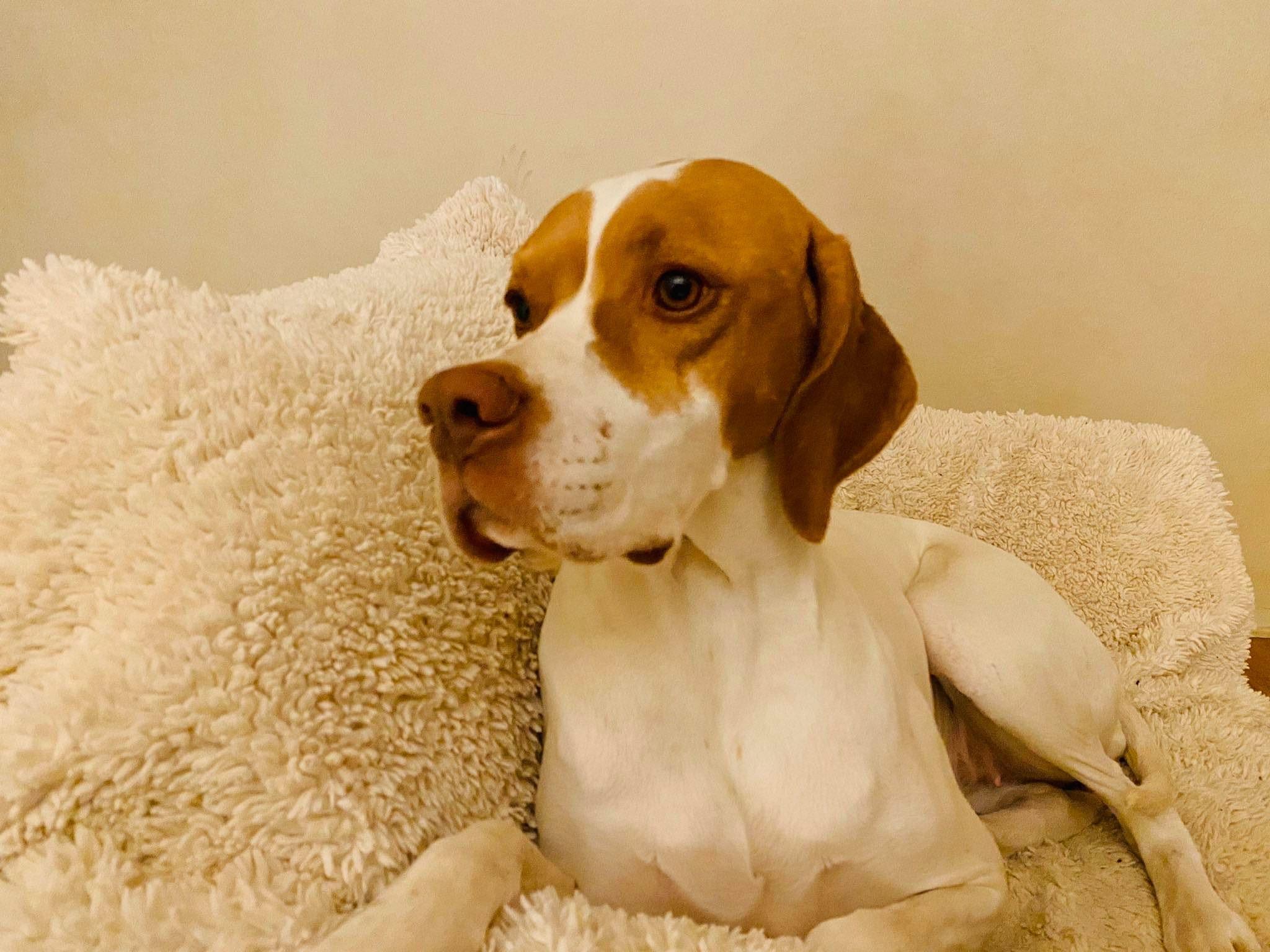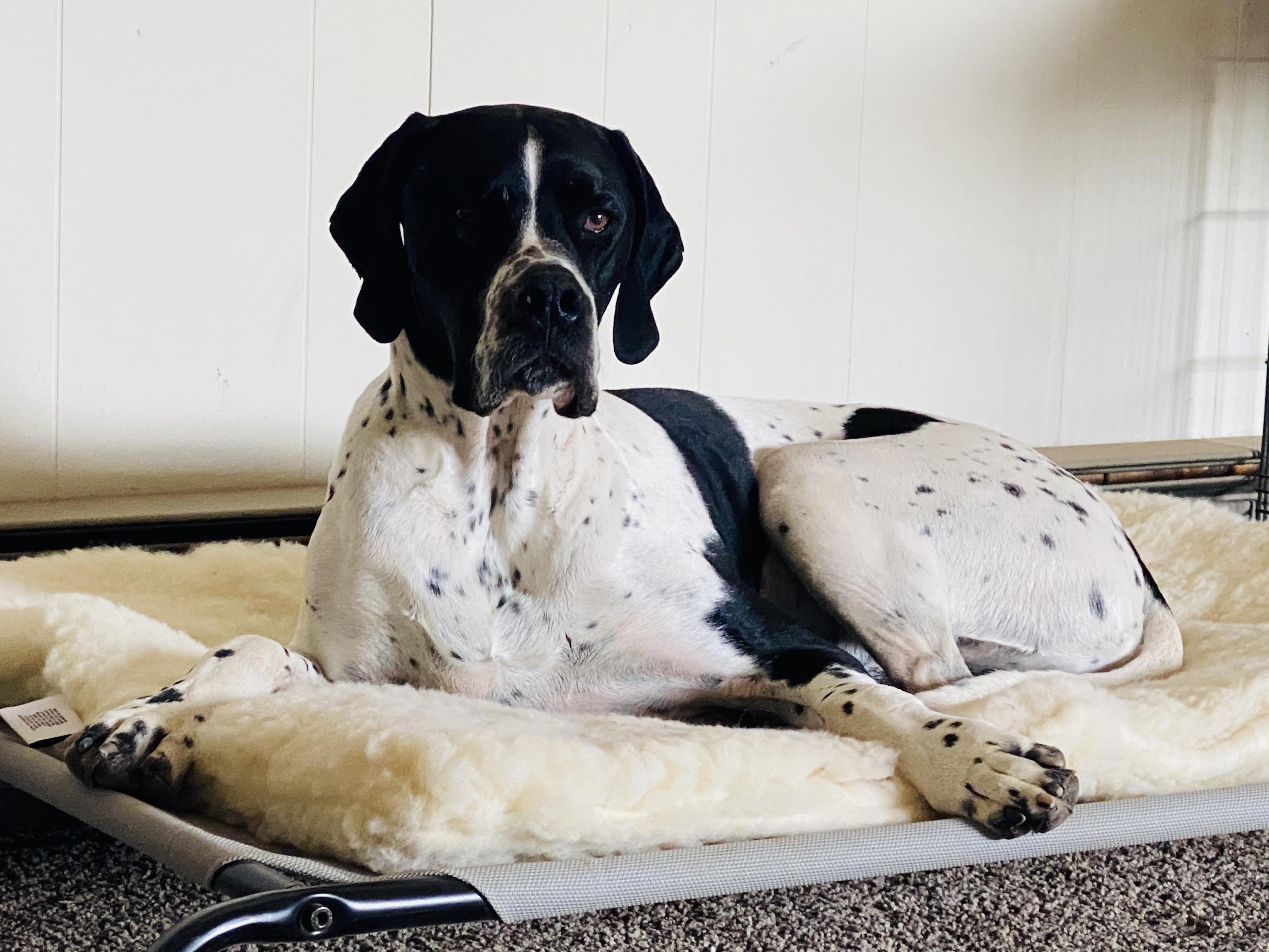 Mina is a female Pointer. Carefully selected as a great representative of her breed, Lonnie decided to make her part of their program. Lonnie has passed Good Dog’s screening process, which involved a review of their breeding practices, environment, and the mental and physical health of their dogs.