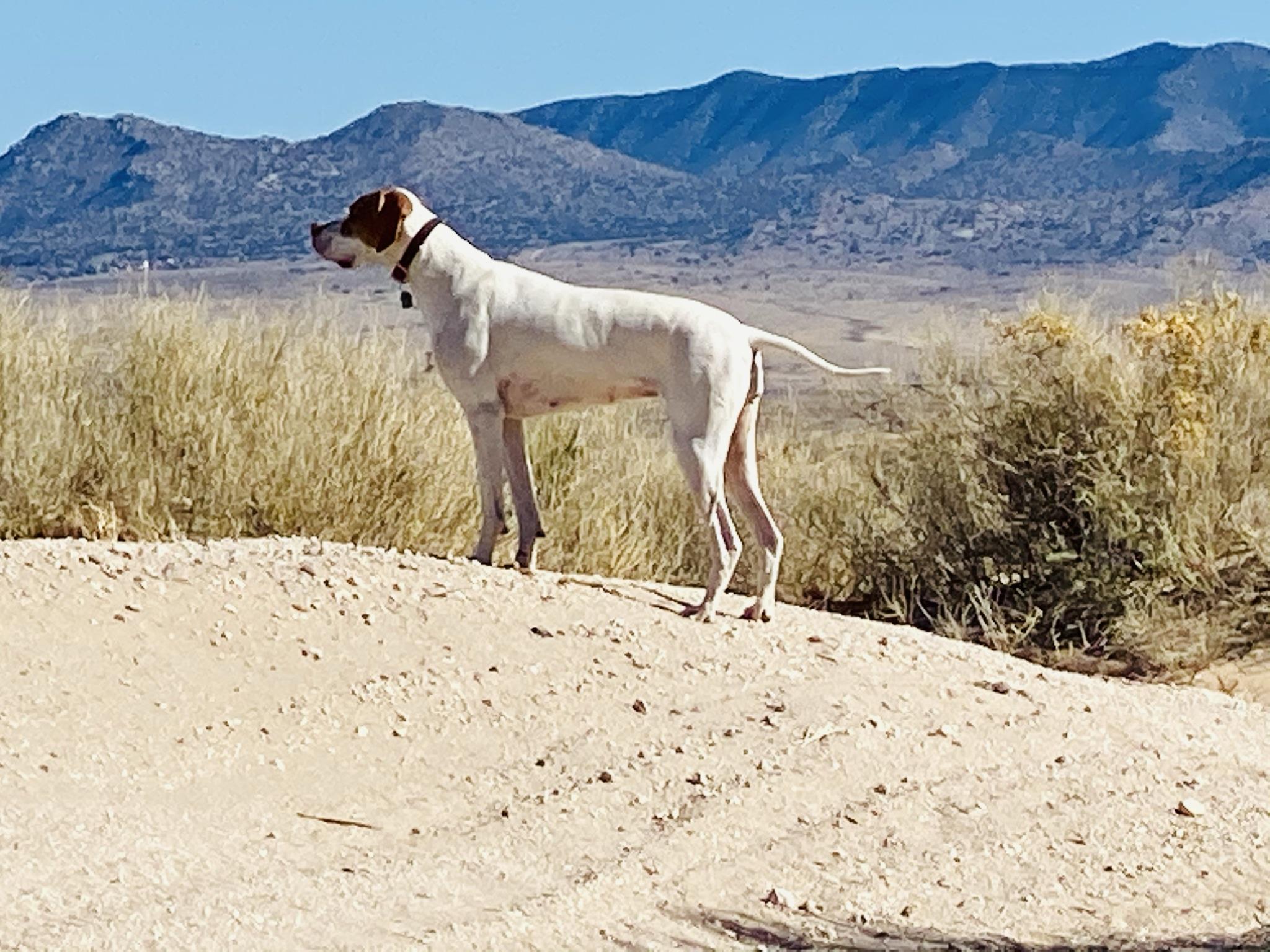 I'm Lonnie B., the breeder behind Mythik Pointers located in Albuquerque, NM. We've had AKC Pointers since 2000 and participate in AKC sanctioned hunt tests and conformation events. The dogs live in the home as an integral part of our family and are currently working towards their Championships and fieldwork training. We are current