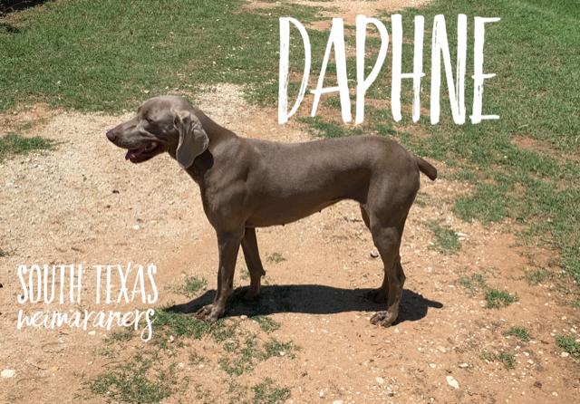 Daphne is a female Weimaraner. Carefully selected as a great representative of her breed, Permanently decided to make her part of their program. Permanently has passed Good Dog’s screening process, which involved a review of their breeding practices, environment, and the mental and physical health of their dogs.
