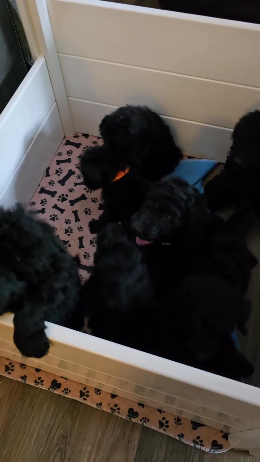 Blackshadow (Blackie) is being spoiled by me, as well as my husband. She has a 4 ft x 3 ft kennel in our sitting room. Did you already potty train her because she is smart? She will start barking when she wants to go outside. I'm so impressed with the love and care you obviously give to your dogs. You are awesome! Thank you so much for making us a happy family!