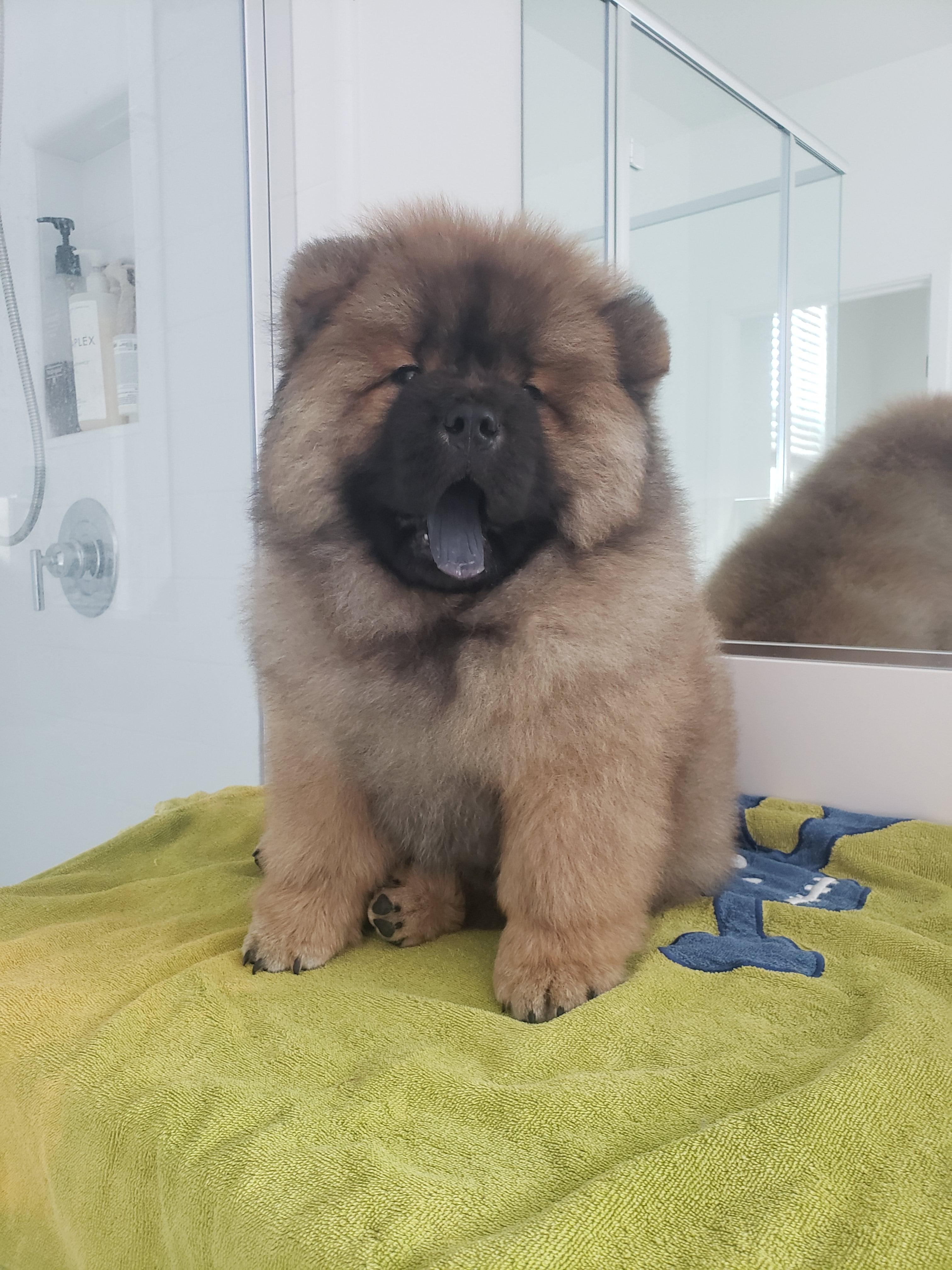 “AKC registered Chow Chow puppy, first round of vaccinations, deworming, a veterinarian health check, AKC registration paperwork, welcome home bag and information. Upon successful interview and approval, deposits are accepted to reserve a puppy.”