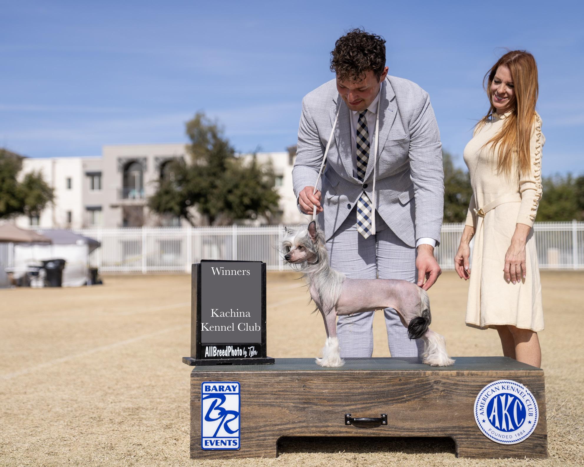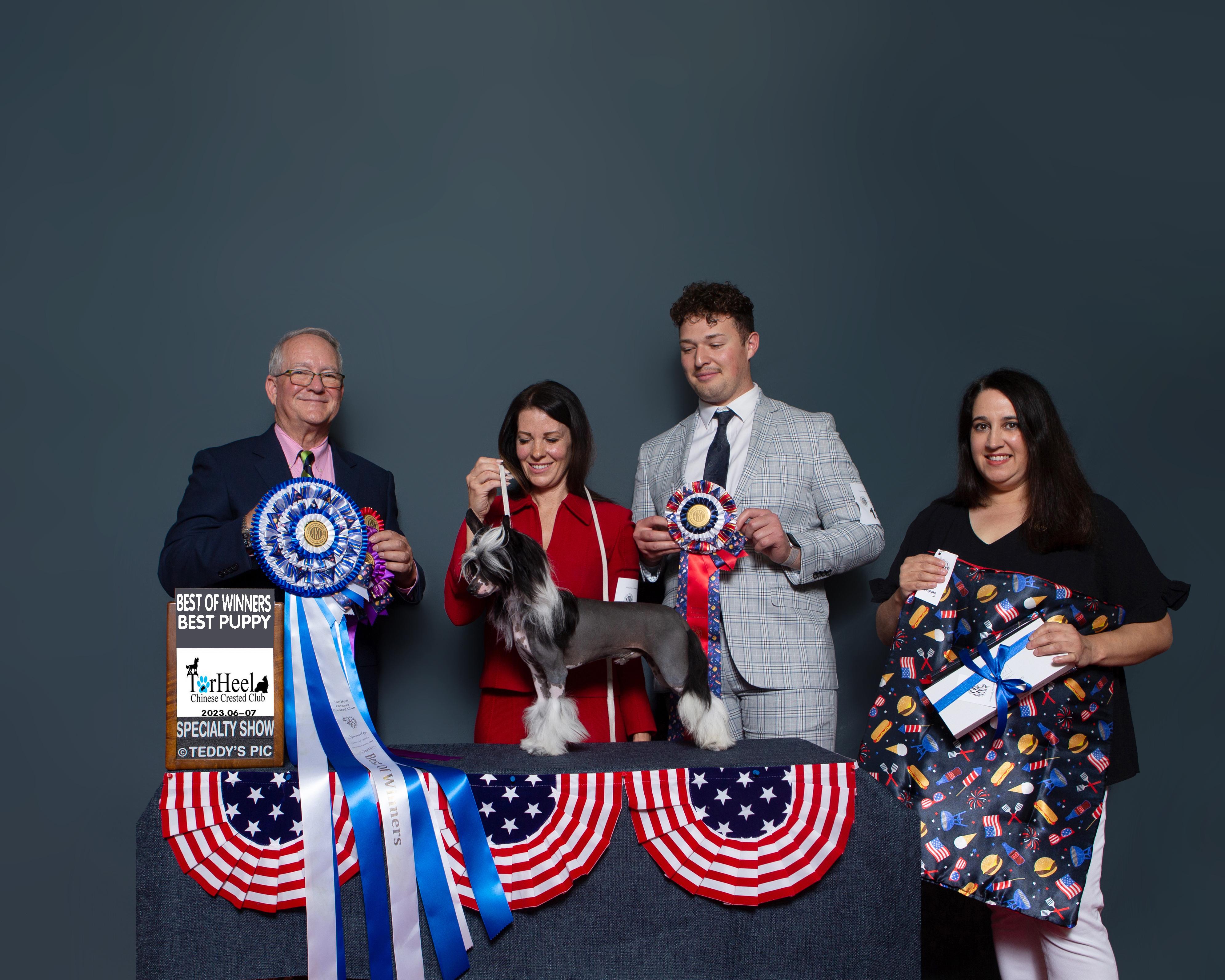 The moment he walked into the ring. He is currently number four Chinese crested in the country and will be attending Westminster 2025 . He is a group winning and multiple group winning placing as well as a Best in Show Specialty winner. His offspring have also proven their worth in the ring with his 6 month old daughter winning an award of Merit at the national her first time out a special.