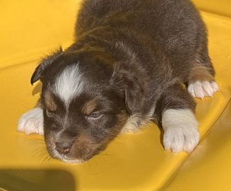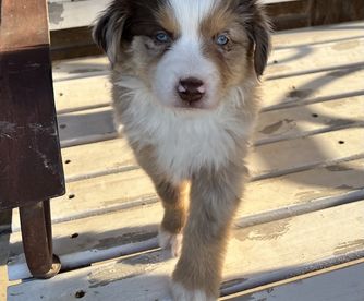 Our puppies include blue merle, black tri, red tri, and red merle. Colors will vary depending on the parent dogs.