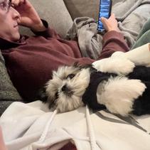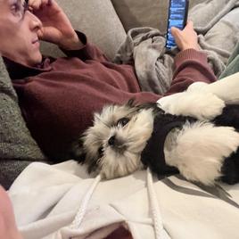 Trolli is a stunning black and white parti Shih Tzu with a playful spirit and a heart full of joy. She absolutely lives for outdoor adventures and loves being part of the action — whether it's a trip to town or just a walk in the yard, Trolley wants to be involved in everything. She’s incredibly intelligent, emotionally intuitive, and thrives on connection. Her warm, affectionate nature makes her the kind of dog that’s always ready for snuggles, yet confident enough to explore with excitement and curiosity. With her vibrant personality and deep love for her people, Trolley brings life and warmth wherever she goes.