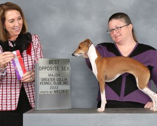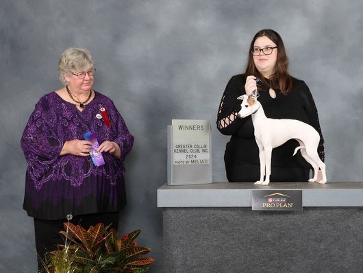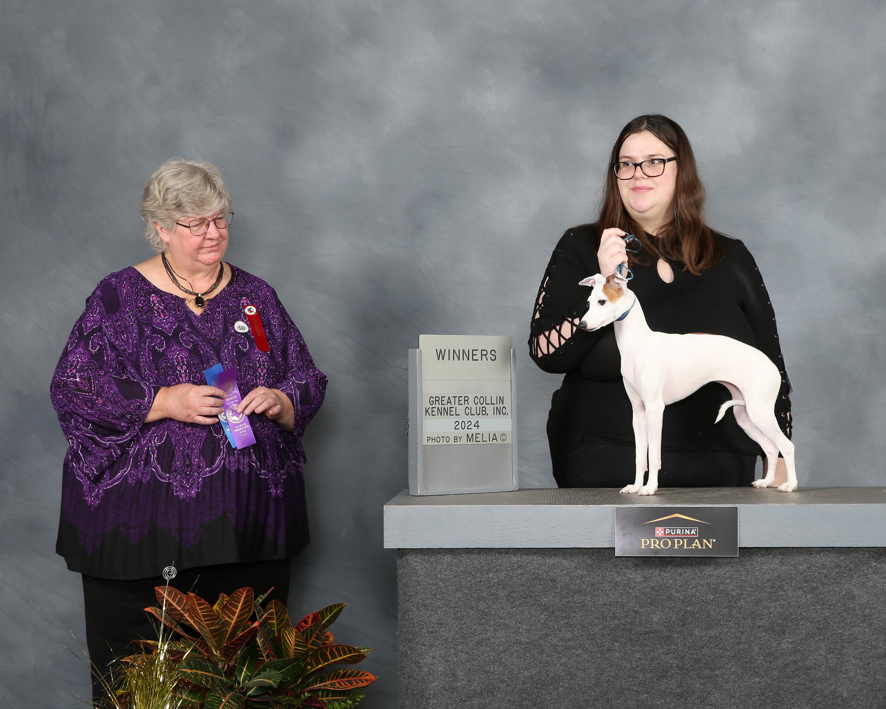 My family grew up raising Golden Retrievers and a family friend got me introduced to the show dog world. I started off working with sighthound breeds and as I grew older my preferences developed. When I was 16 I settled on Great Danes. In 2021 I expanded and added Italian greyhounds. I have since retired from Danes and work only with IG’s.