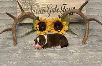 We had a wonderful experience with Narrow Gate Farm! Our puppy is perfect and we absolutely adore her! They were really easy to communicate with and made the process so simple and stress free! We are super pleased and would definitely recommend!