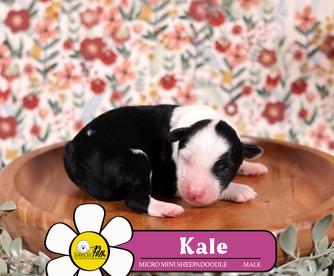 Our Old English Sheepdog puppies include gray and white and black and white. Sheepadoodle puppies include black, white, and black and white. Colors will vary depending on the parent dogs.