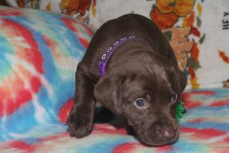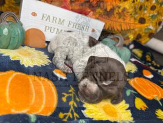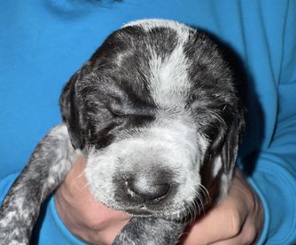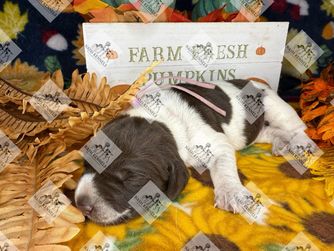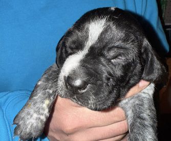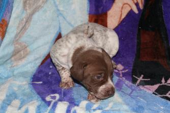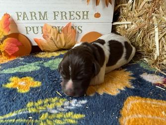 Our puppies include black roan, black and white, liver roan, liver and white, and liver. Colors will vary depending on the parent dogs.