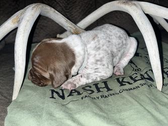 I'm Jordan N., the breeder behind Nash Kennels located in Soap Lake, WA. Nash Kennels offers the best in purebred German Shorthaired Pointers. Our puppies are not just cute and cuddly, but also strong and healthy, making them perfect for hunting, scent detection, working or simply as a companion pet. Our goal is to ensure that every puppy we have reaches its full potential and that's why we go above and beyond to produce only the best. Our GSP's are registered with Dog Registry of America and our proof of registry can be provided. If you're in the market for a top-quality hunting buddy, scent detection K9, working dog or a loving companion pet, make Nash Kennels your first stop. We require a deposit to hold your chosen puppy, which is due when you make your pick. Don't miss out on the chance to own one of our exceptional German Shorthaired Pointers!