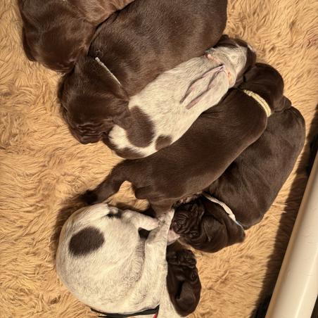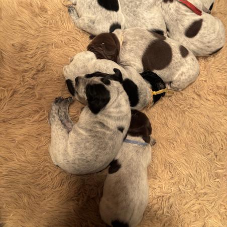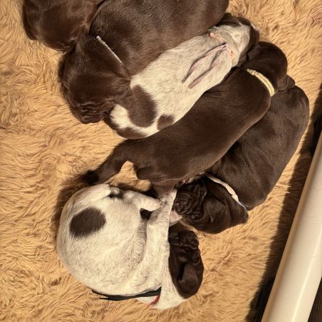 As avid enthusiasts of the German Shorthaired Pointer (GSP) breed, we were drawn to breeding due to their unparalleled excellence. These magnificent beings possess captivating personalities that leave a lasting impression. Our unwavering commitment is to bring forth only the finest offspring, imbued with remarkable hunting instincts, yet equally suited as loyal and affectionate family companions. Our quest for perfection drives us to consistently refine our bloodline, unlocking the full potential of the exceptional qualities inherent in the GSP bloodlines.