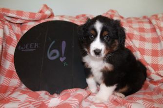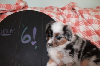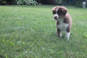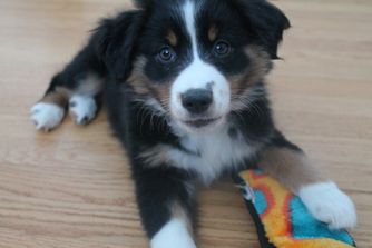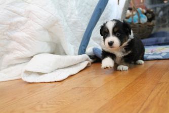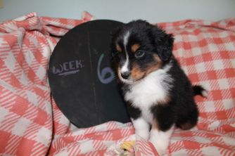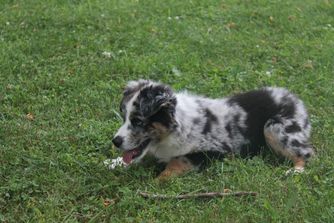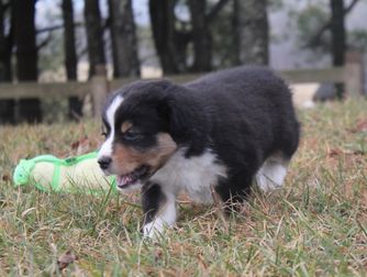 Our puppies include red tri-color, black tri, red merle, and blue merle. Colors will vary depending on the parent dogs.