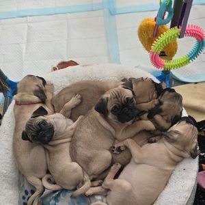 I'm Natalia B., the breeder behind Natalia's Pugs located in Rochester, NY. Both our Pugs live at home with us we love them like family. They welcome 7 little perfect health pugs into the world. This will be the only time we have puppies. They are ready on the 29th they will have 2 rounds of shots and deworming. They come with their own dog crate.