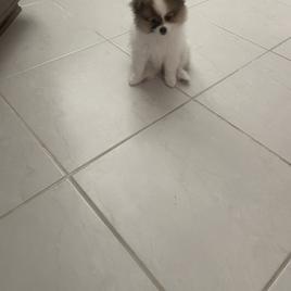 JoJo is a stunning bright white and cream parti purebred registered Pomeranian.