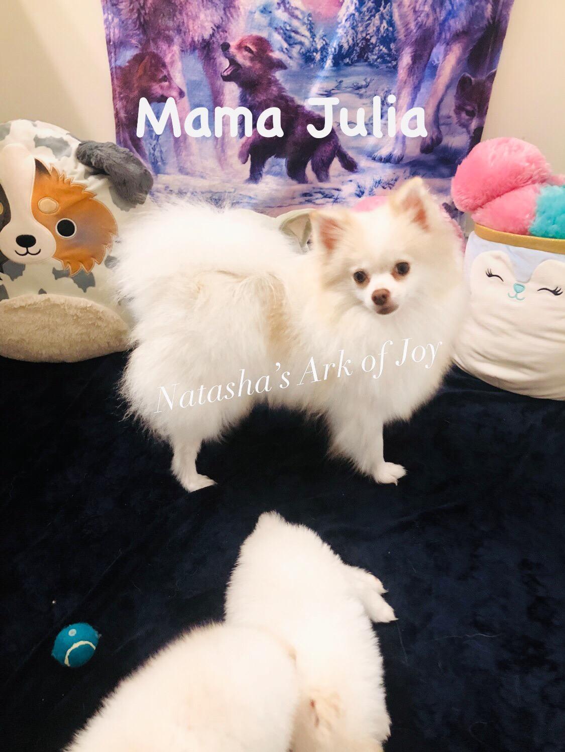 Julia is a female Pomeranian. Carefully selected as a great representative of her breed, Natasha and Gregory decided to make her part of their program. Natasha and Gregory has passed Good Dog’s screening process, which involved a review of their breeding practices, environment, and the mental and physical health of their dogs.