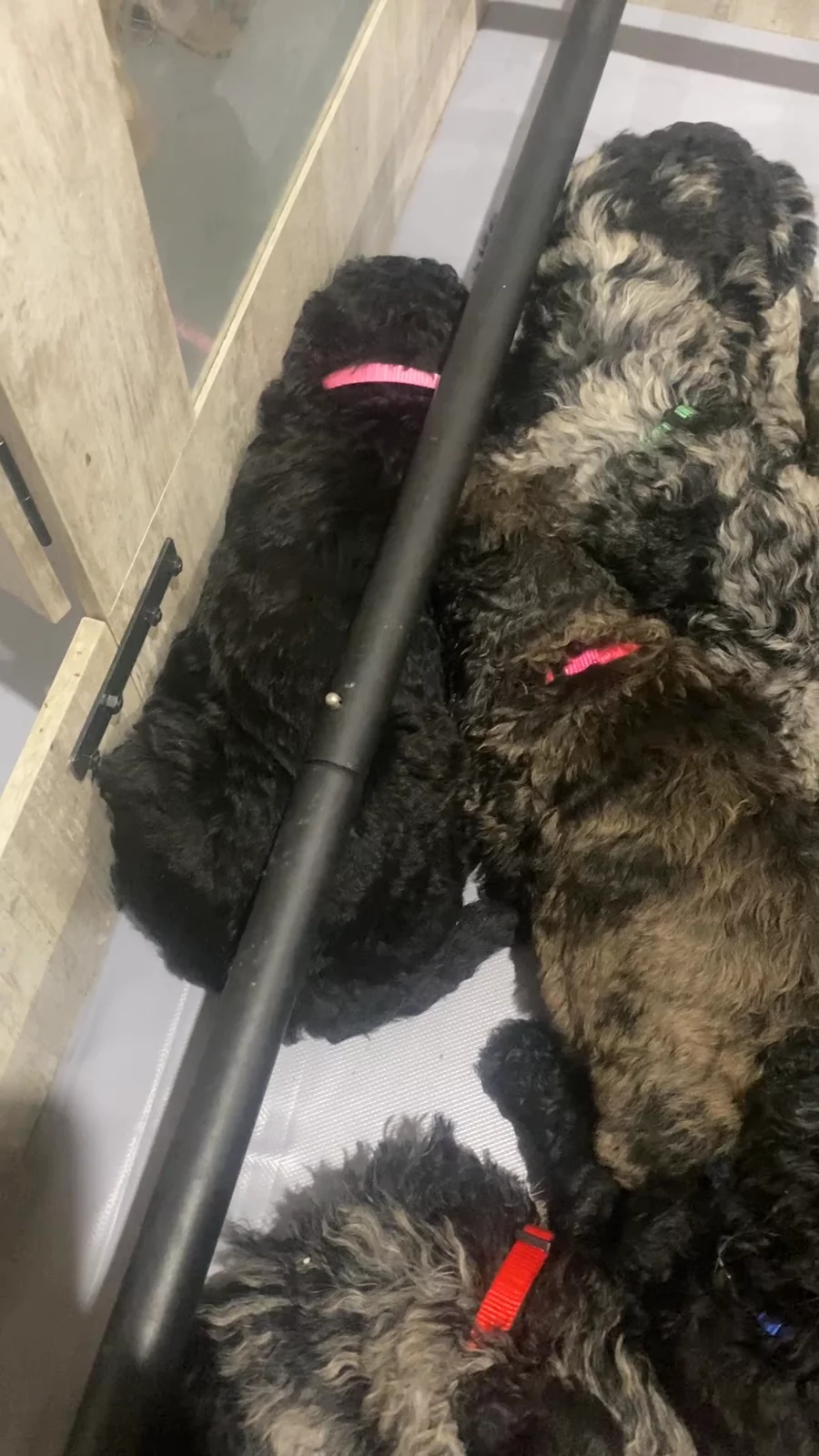 5 weeks old today . They all got their collars changed and they don’t know what to think about the new ones . They are growing up so fast 🩷💙