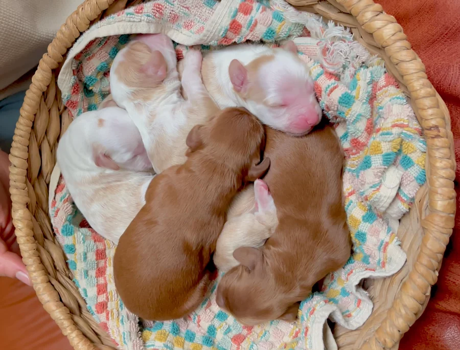 We exercise great care in our breeding to create the most amazing puppies! We give them continuous love, attention and socialization after they are born so they are loving, companions with fantastic dispositions. All of our puppies are raised in our home with our four daughters and other adult dogs. They spend the last month of their time with us right in the heart of the home - so they are very acclimated to all of the sounds of a busy household as well as played with many multiple times per day.
