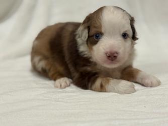 Our Toy Australian Shepherd puppies include red & white, black & white, red, black, black tri, blue merle, red merle, red tri, and blue tri. Miniature Australian Shepherd puppies include red & white, black & white, blue merle, black tri, red tri, red merle, red, and black. Colors will vary depending on the parent dogs.