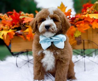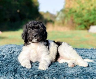 Our Bernedoodle puppies include black and white, tri-color, and blue merle. Cavapoo puppies include black and white and red. Goldendoodle puppies include cream, apricot, red, and chocolate. Shihpoo puppies include merle, red and white, brindle and white, black gold and white, black gold and silver, and brindle. Schnoodle puppies include apricot and brown. Colors will vary depending on the parent dogs.