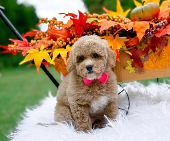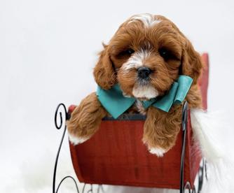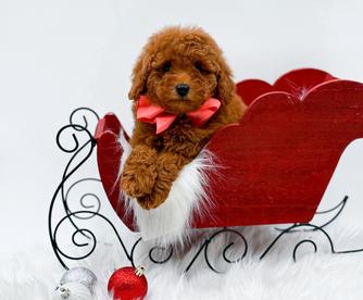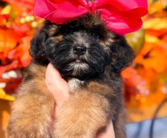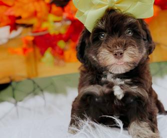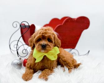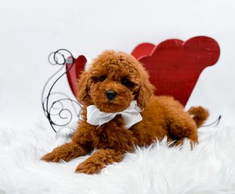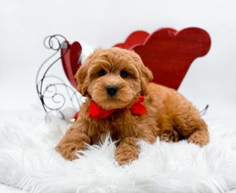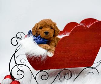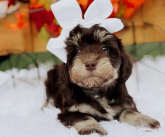 Our Bernedoodle puppies include black and white, tri-color, and blue merle. Goldendoodle puppies include cream, apricot, red, and chocolate. Cavapoo puppies include black and white and red. Shihpoo puppies include merle, red and white, brindle and white, black gold and white, black gold and silver, and brindle. Schnoodle puppies include apricot and brown. Colors will vary depending on the parent dogs.