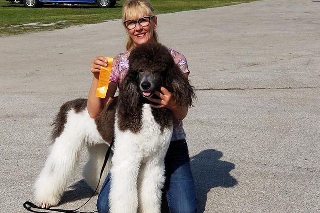 Godiva is a female Poodle. Carefully selected as a great representative of her breed, Pamela decided to make her part of their program. Pamela has passed Good Dog’s screening process, which involved a review of their breeding practices, environment, and the mental and physical health of their dogs.
