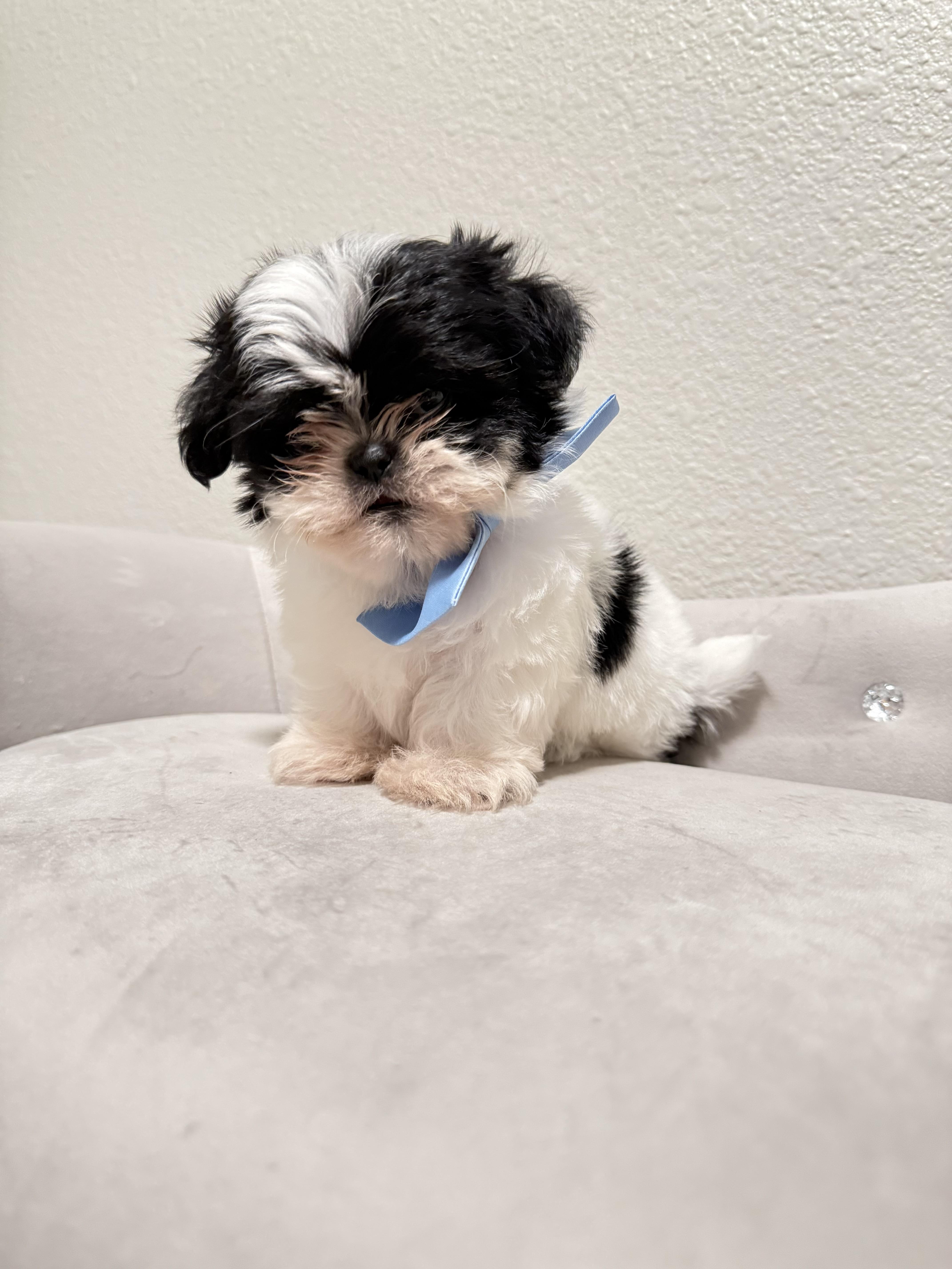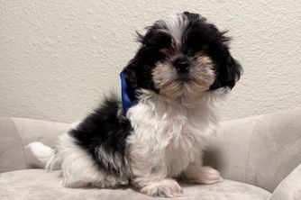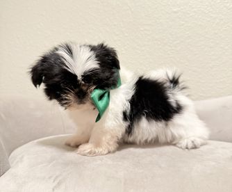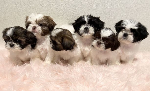 Our Mal-Shi puppies are black and white. Maltipoo puppies include black, brown, white, phantom, and black & tan tri-color. Shih Tzu puppies include tricolor, black and tan, black, silver gold and white, gold and white, and black gold and silver. Colors will vary depending on the parent dogs.
