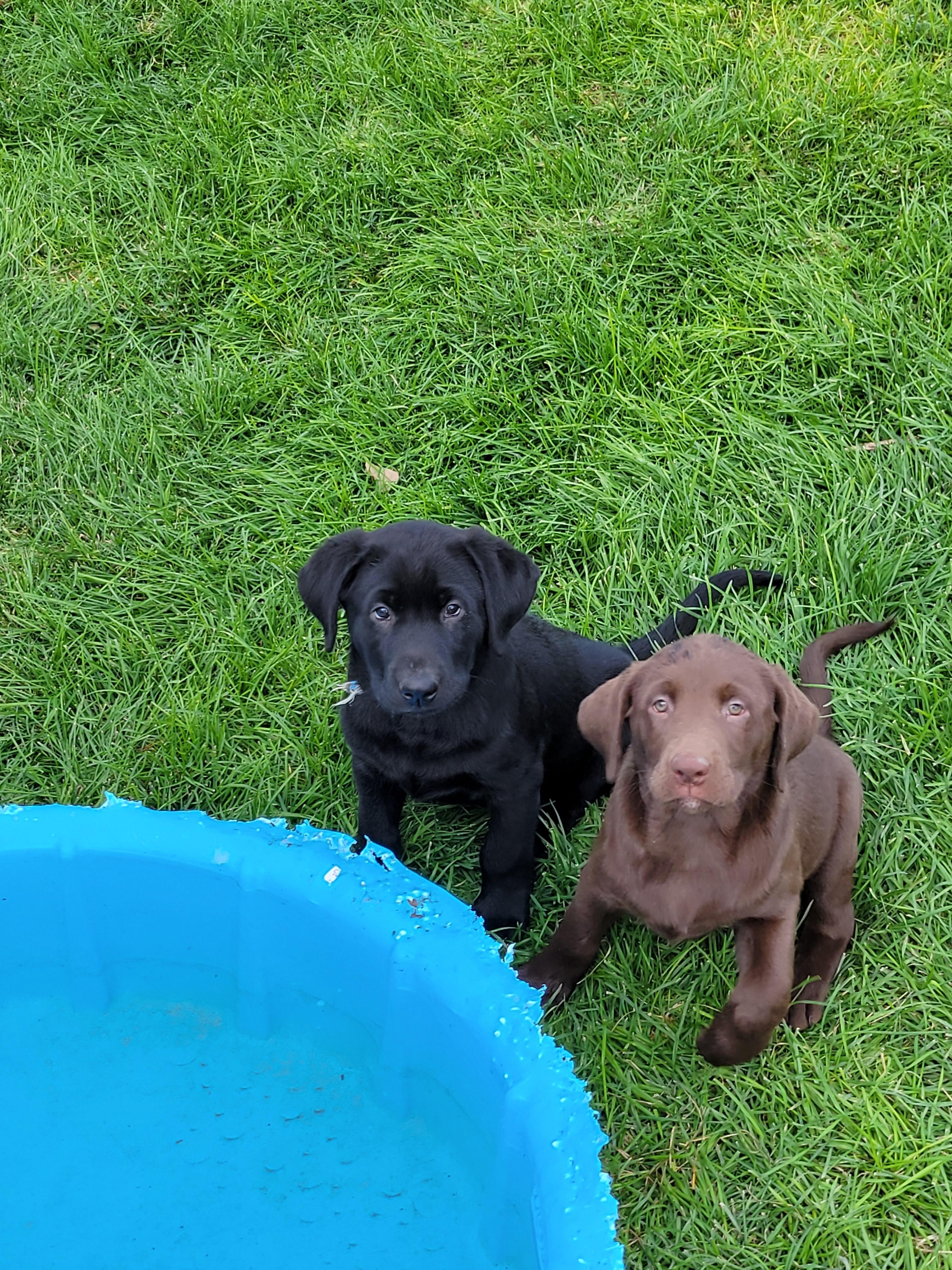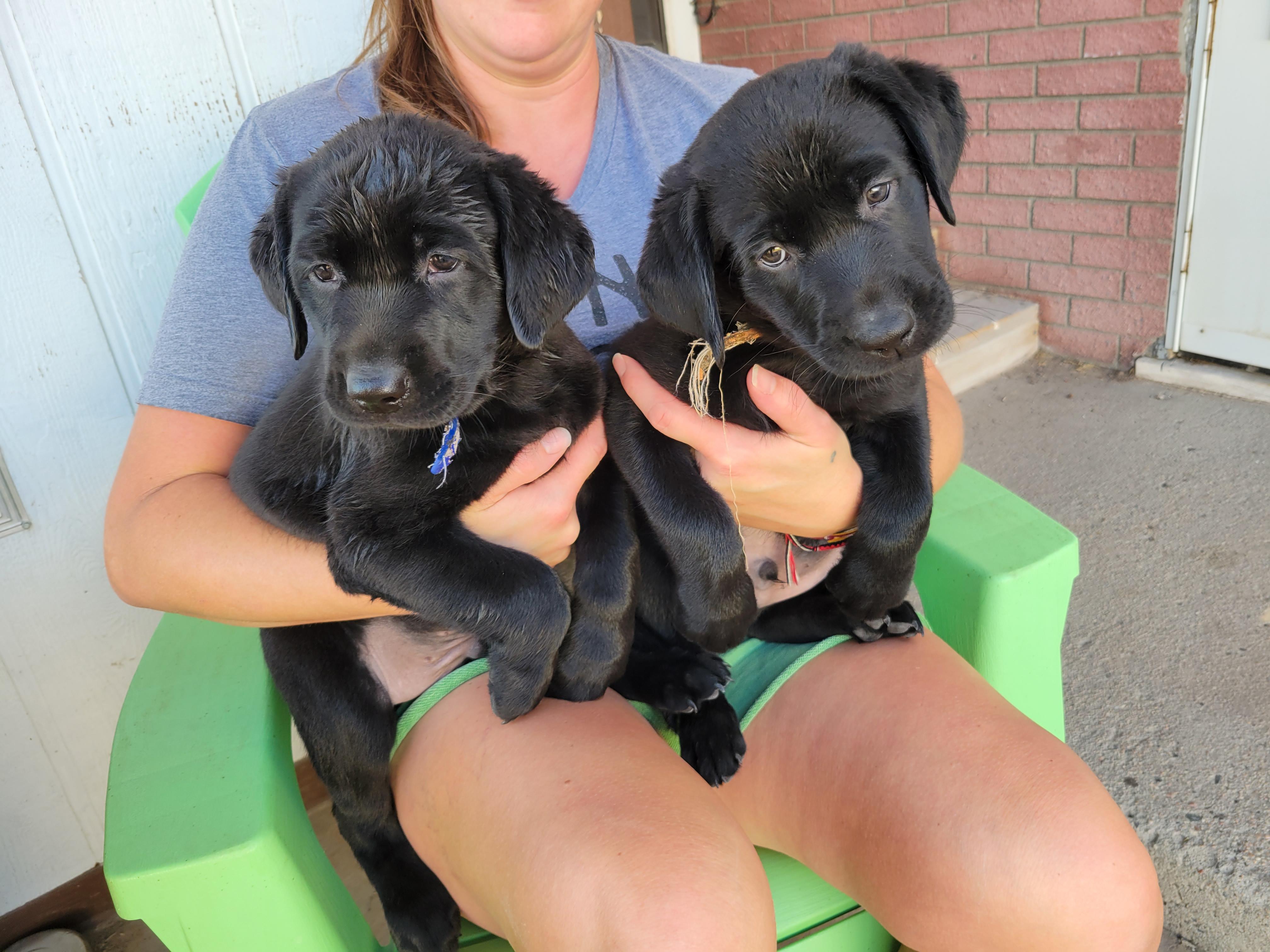 Our Labrador Retriever puppies include black, chocolate, and yellow. Dilute Retriever puppies are charcoal. Colors will vary depending on the parent dogs.