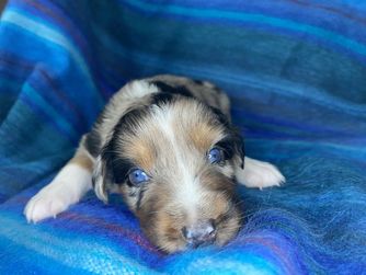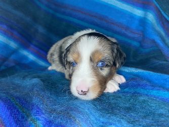 Our puppies include blue merle, black tri-color, and red tri-color. Colors will vary depending on the parent dogs.