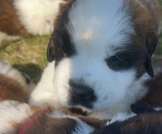 Smalls is a male Saint Bernard. Carefully selected as a great representative of his breed, Jessica decided to make him part of their program. Jessica has passed Good Dog’s screening process, which involved a review of their breeding practices, environment, and the mental and physical health of their dogs.
